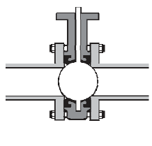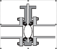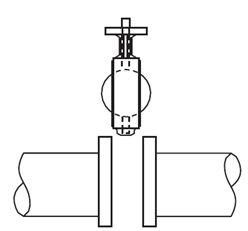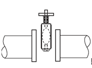 | Disc positioned in the almost closed position. Pipe flange spread allows sufficient room for valve. |